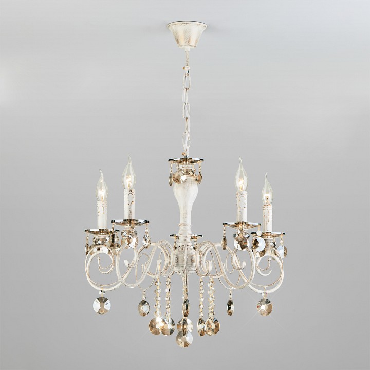 Подвесная люстра Eurosvet Ravenna 10104/5 белый с золотом/тонированный хрусталь Strotskis